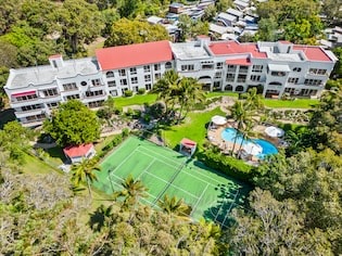 Floodlit tennis court